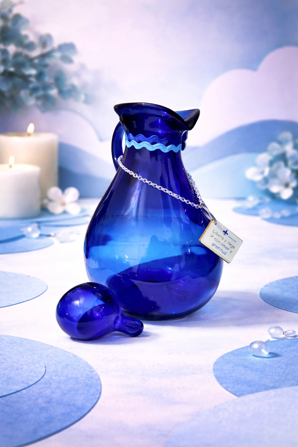 Jarra de vidrio azul cobalto con tapa
